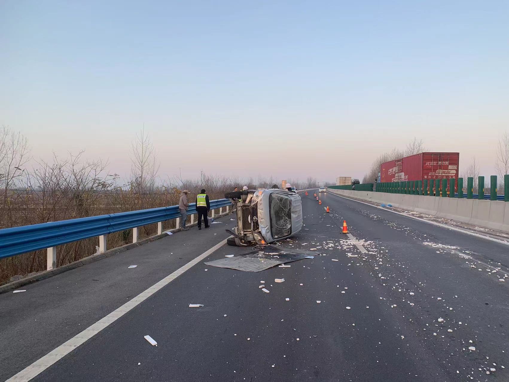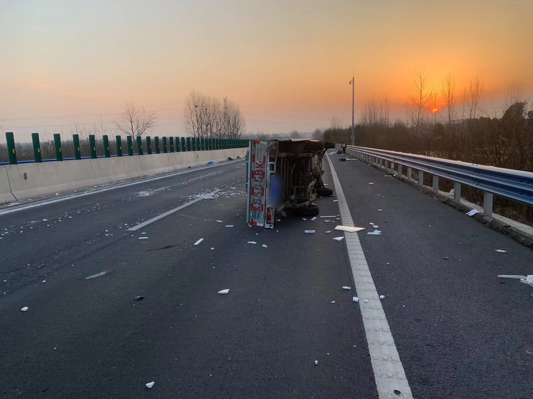 2023年12月21日6时31分,沪陕高速由西向东824公里处,一辆轻型卡车侧翻。民警赶往事端现场,与多部门联合翻开救援。